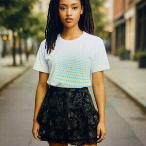 NWT Ted Baker Marinah Mini Skirt 3 (US 8) Black Velvet Ruffle Dropped Waist