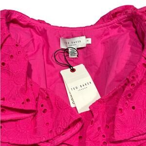 NWT! Ted Baker Mazieh Broderie Peplum Top in Bright Pink - Size 1 (US Size 4)