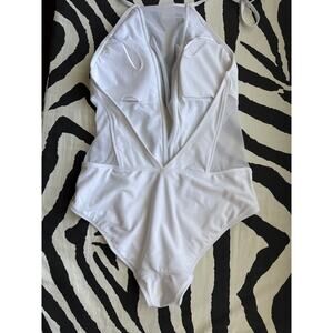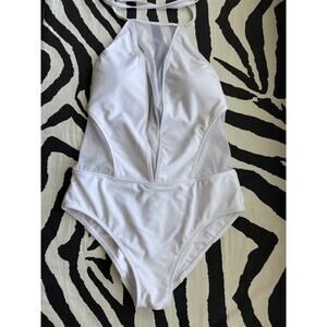 NWT Ted Baker Mesh Panel Halter Top One Piece Swimsuit in White, US 8