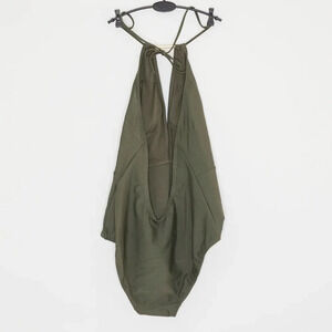New with Tags Ted Baker London Pikaa halter one piece swimsuit in Khaki. A classic halter swimsuit with a deep front cutout and open back. Ties at back of neck. Moderate coverage. Lined.