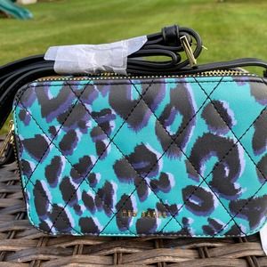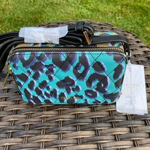 NWT Ted Baker Quiltt Leopard Print Camera HandBag / Bag in Olive