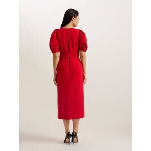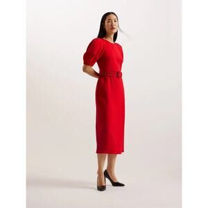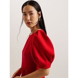 NWT Ted Baker Red Gabyela Puff Sleeve Midi Dress With Belt Size 1 (4 US)
