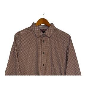 NWT Ted Baker Shirt Men 5 Large Brown Button Up Geometric Business Office Work