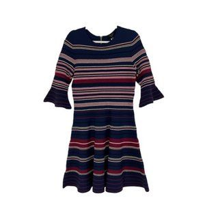NWT Ted Baker Women Size 3 Ottoman Skater Dress 3/4 Bell Sleeve Stripe Dark Blue