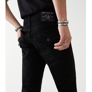 Brand new with tags. A pair of black jeans by True Religion. Style is Rocco Skinny. Waist size 14, inseam 29. Made with 98% cotton and 2% spandex.
