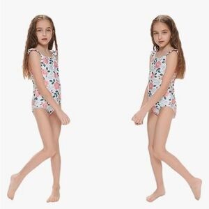 NWT Teen Girls One Piece Swimsuit Ruffle Shoulder Strap Cute Bathing Suits