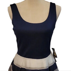 NWT Teeze Me tank dress. Solid blue bodice and navy and white striped skirt. Back zipper closure. Size 7/8. Smoke free home.