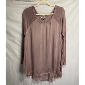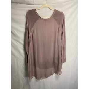 NWT Temp Paris 100% Silk Pullover Hi-low Blouse Lined Long Sleeve Mauve Large