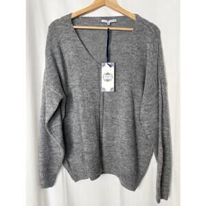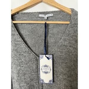 NWT Tempo Paris Gray V-Neck Sweater Size S/M Cozy Soft Longsleeve