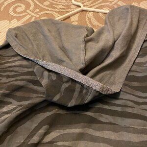 Brand new with tags, this lightweight Tempo Paris zebra duster/topper is made in Italy. Generous jump sized M/L, this knit topper is an open long cardigan with pockets and a hood. Gorgeous silver glitter trim as shown in the photos. Great transitional piece to wear all year with so many outfits or ideal as a beach/spa cover-up. Perfect for travel. Generously sized - feel like this would also fit an XL. Enjoy!