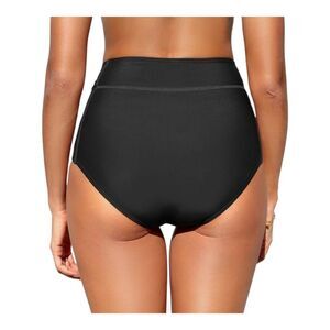 Women's Small Solid Black High Waisted Bikini Bottom featuring a stylish high-waisted design that provides tummy control