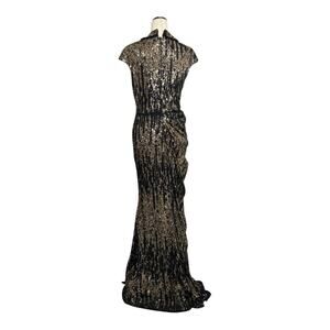 NWT Terani Couture Glittering Black and Gold Sequins Maxi Gown Size 6 Bin8