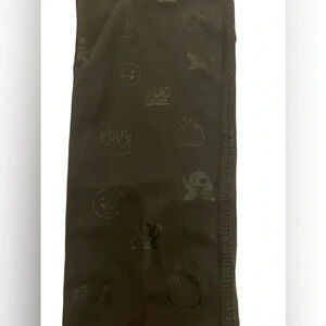 Extremely hard to photograph but so so cute! It’s black foil printed emojis on black leggings