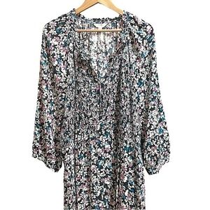 NWT Terra & Sky Plus Size Micro Floral Smocked Midi Dress Size 4X Button Down