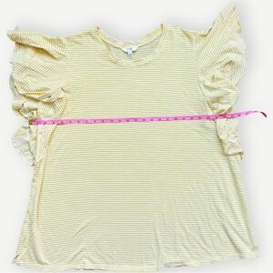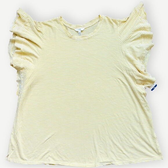 NWT Terra & Sky Short Flutter Sleeve Yellow & White Striped T-Shirt. 2X. 20. 22.