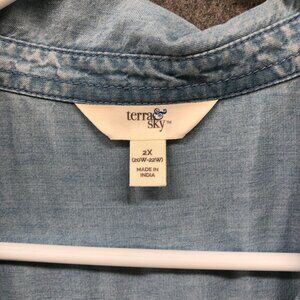 NWT Terra Sky Sleeveless Chambray Button Up Shirt Womens 2X Blue Pintuck