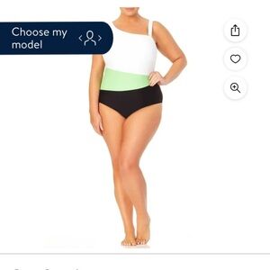 This one shoudler color block one piece from Terra & Sky featuring tummy control, removable cups, adjustable straps and adjustable back closure is ideal for the lake, beach or pool party.