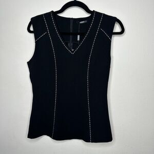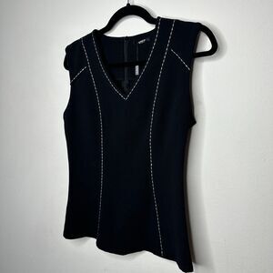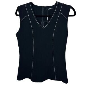 Tesoro Moda Black With White Stitching VNeck Sleeveless Top Back Zip