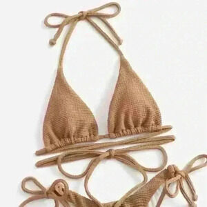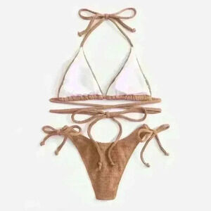 NWT Textured Triangle Wrap Around Tie Bikini SET