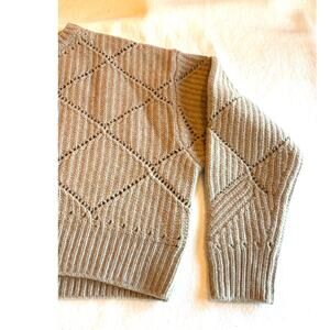 NWT Thakoon 100% Merino Wool Sweater Argyle Pointelle Oversized Oatmeal L $260
