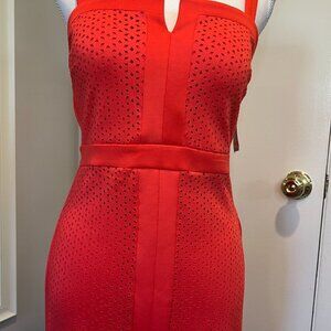 NWT Thalia Sodi Red Scuba Eyelet Overlay Scuba Sheath Midi Dress, Size S