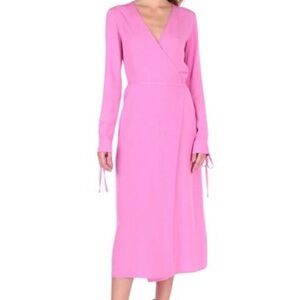 Gorgeous maxi dress from attico. Rich pink crepe fabric. Long sleeve with deep V neckline. wrap Dress