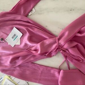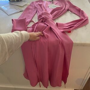 NWT- The Attico “Vestaglia” Pink Crepe V Neck Longsleeve Wrap Maxi Dress
