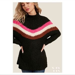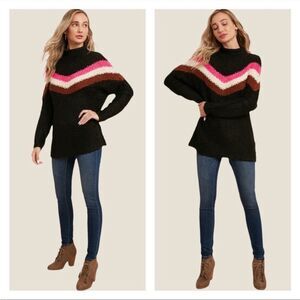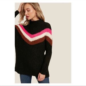 NWT The Bluivy Color Block Chevron Mock Neck Pullover Size M/L