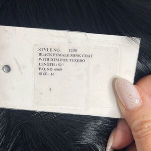 New with tag The Caitlin Black Mink Coat with Fox Tuxedo Collar is a lush fashion statement for her with high-quality fur. Never worn- just to make pictures for sale. The shining appeal is made extra fantastic with a lengthy design and side entry pockets. The straight cut style is classic and fastened with three functional hidden hook and eye closures.