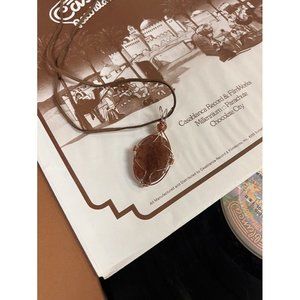 NWT The Carnelian Natural Stone Wire Wrapped Pendant Necklace With Suede Cord