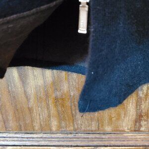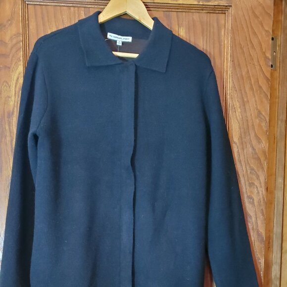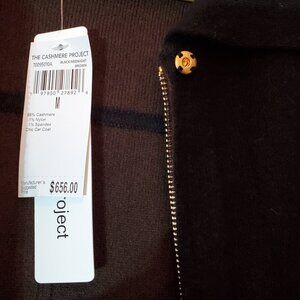 This is an amazing opportunity - it's brand new with tags, black on the outside and brown inside. It's a super thick cashmere with gold zipper and snaps. Look at the detail on the back and placket in the front. Really well made, and a super bargain for the real thing!!!