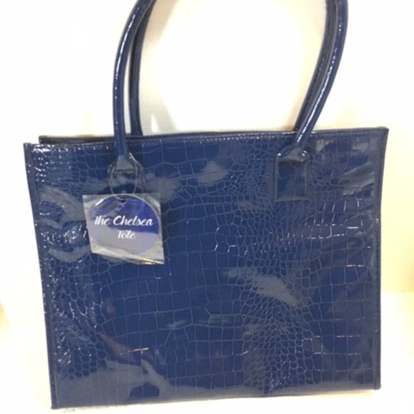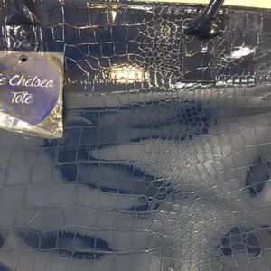 NWT The Chelsea Tote Faux Croc Pattern on Front Blue 15x12.5