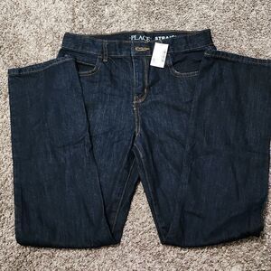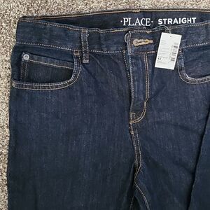 NWT The Children's Place Boys Straight Jeans 12 Husky adjustable band Dark Wash