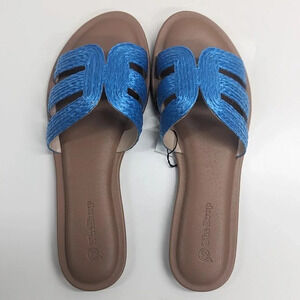 NWT The Drop Monika Flat H-Band Slide Ocean Blue Raffia Size 7.5