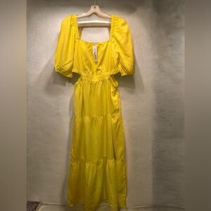 NWT The Drop Women's Anaya Square Neck Cut-Out Tiered Maxi Dress Lemon Size L