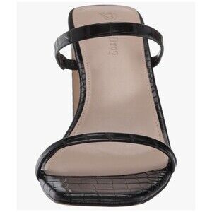 The Drop Women's Avery Square Toe Two Strap High Heeled Sandal in size 8 Black features a sleek and stylish design perfect for various occasions such as weddings, parties, casual outings, and formal events.