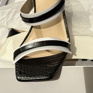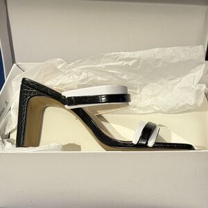 NWT The Drop Women's Avery Square Toe Two Strap High Heeled Sandal Sz 7.5 Black