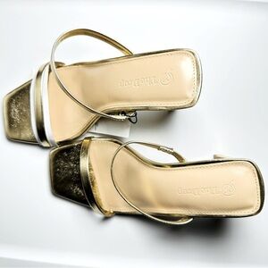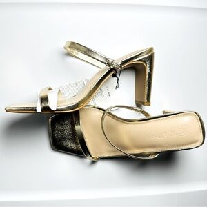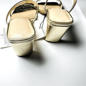 NWT The Drop Women’s Sz 6 Gold Avery Square Toe Two Strap High Heeled Sandal