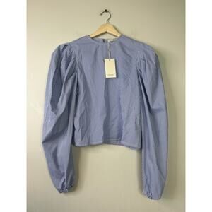 NWT The Femm Poplin Lightweight Puff Sleeves Luella Blouse Blue Size: Small
