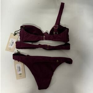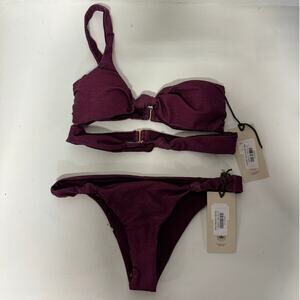 NWT The Garzetta Arena Double Knot Top & Bow Bottom Bikini Set Burgundy Womens S