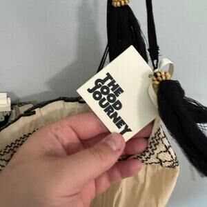 NWT The Good Journey Light Beige & Black Tiered Midi Dress Women's Size XL. Sleeveless, thin straps that tie w/ beaded details. Stretchy upper, 100% cotton, lined with 100% polyester. New with tags. Please see close-up pictures for condition details. Manufacturer calls the colors: Sand & Black.