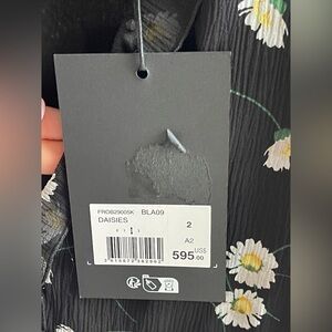 NWT The Kooples 100% Silk Daisy Printed Black Boho Whimsigoth Mini Dress