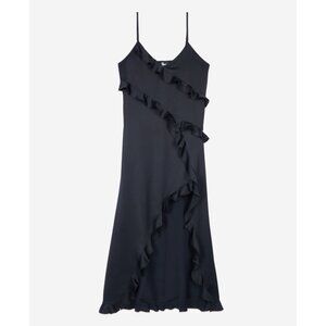 NWT The Kooples Black Long Ruffle Slip Dress Asymmetrical Hem Size US 8