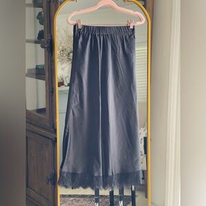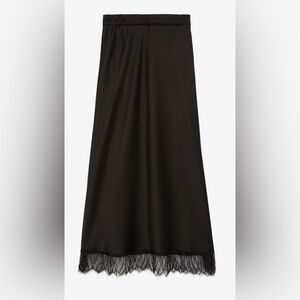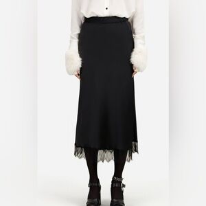 NWT The Kooples Long Black 100% Silk Lace Hem Midi Skirt