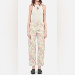 NWT The Kooples Rose Printed Boyfriend Jeans Ecru Floral Zip-Fly