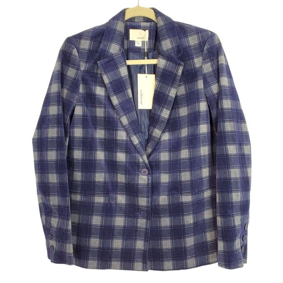 NWT The Korner Blue Plaid Corduroy Blazer Jacket