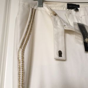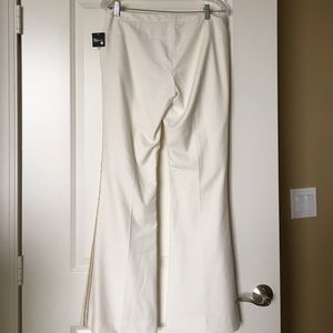 Winter white with detailed beading down each outer leg. Low rise, straight and narrow through hit and thighs. NWT.