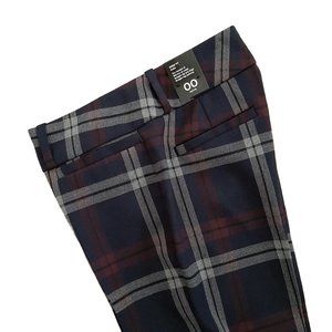 NWT The Limited Drew Fit Plaid Ankle Pants, Slim Cut, Navy/Gray/Burgundy, 00P