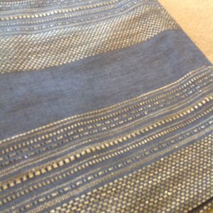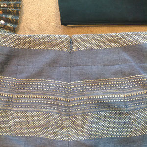 White and gold stitching with metallic silver thread that glints when you move; light denim/cornflower blue (length 21”). Lovely skirt, never worn. Pair it with a button down for work or with a t-shirt for a night out!