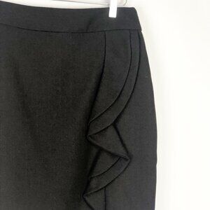 New with tags condition. No visible flaws. Mid-waist, pencil skirt with ruffle front detail.